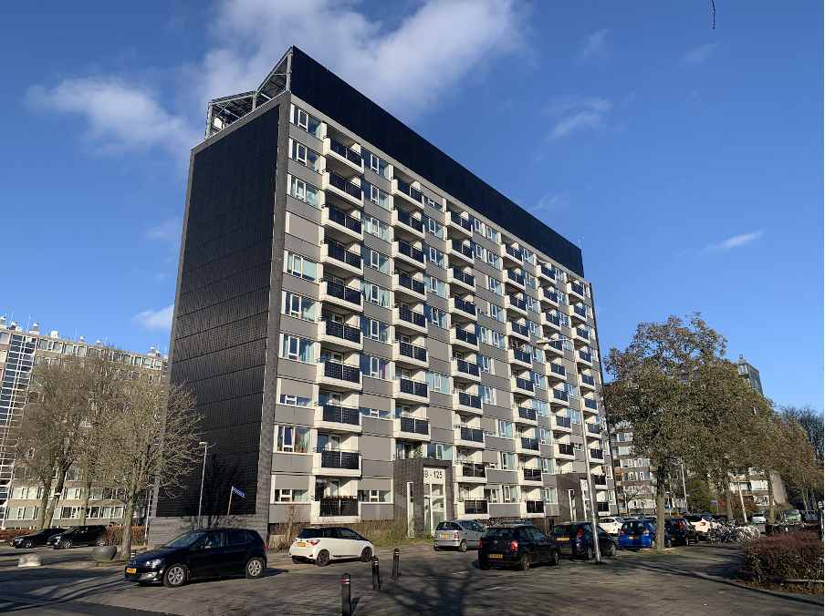 Completed in 2021 and led by the government-funded Inside Out consortium, the 1960s high-rise apartment building was renovated using the novel ‘Inside Out’ concept, based on pre-fabricated and modular building technologies. In the Henriettedreef the building systems that used to be installed inside, are now integrated outside in the different multi-functional building modules (façade; roof; balcony; climate; data and roof crown modules). This means for instance that the facade module can insulate, ventilate, heat and generate energy, making the renovation faster, more affordable and comfortable for tenants who can stay at home throughout the work.