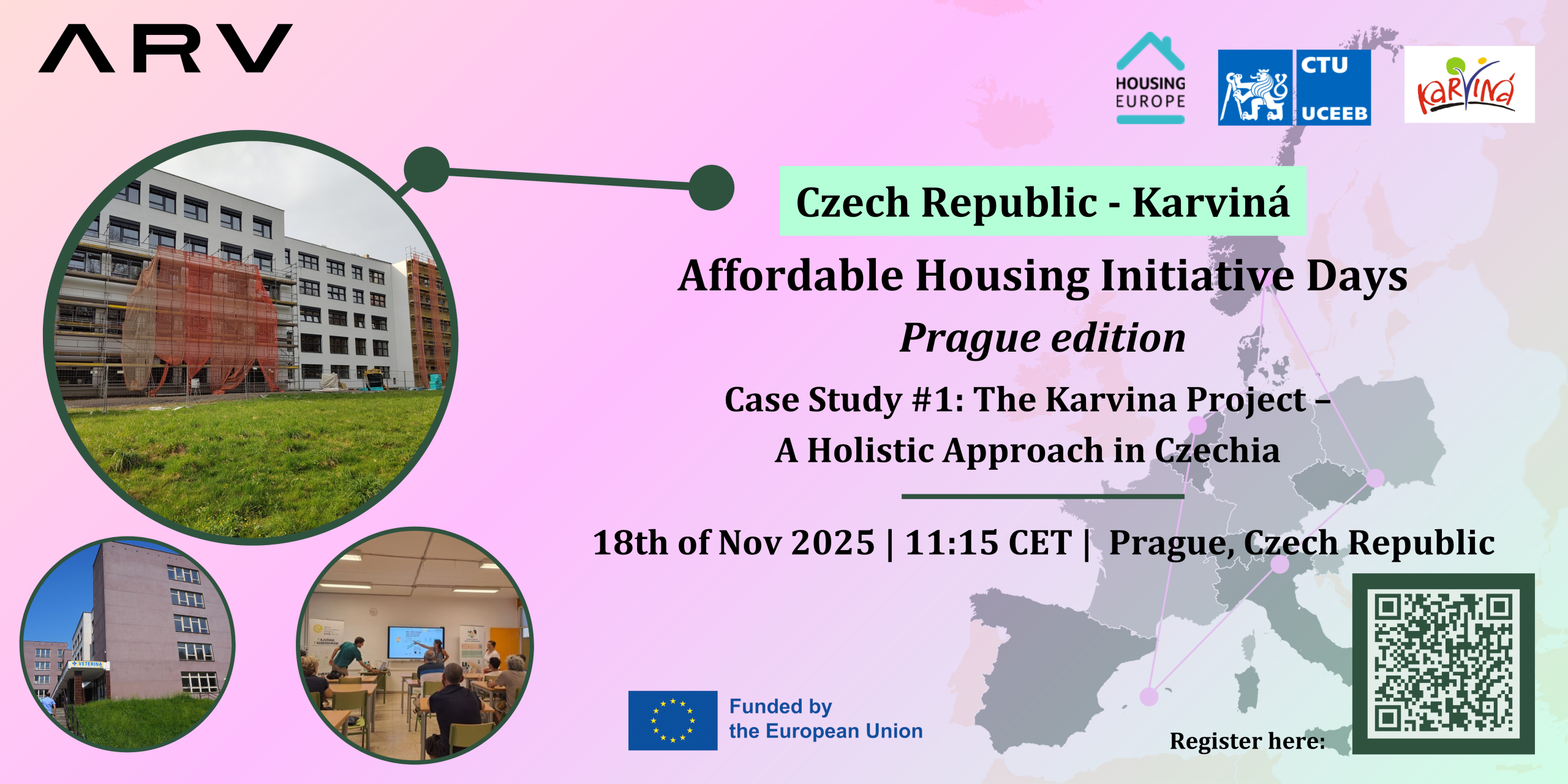 As part of the Affordable Housing Initiative (AHI) Days – Prague Edition, organised by Housing Europe under the EU-funded Affordable Housing Initiative, this session will introduce the district renovation project implemented in Karviná as part of the EU-funded ARV project.