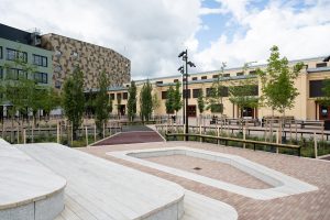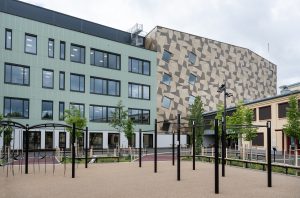 In the Voldsløkka school concrete was used in critical parts of the structure, replacing it with wooden structures in other parts of the building load-bearing structure. In general, there are several technical challenges associated with concrete where high amounts of cement are replaced by supplementary cementitious materials (SCMs). With reduced cement content and increasing amounts of other additions, the early strength as well as the long-term strength development can be reduced. Some durability properties might be also reduced. Resistance to alkali silica reactions as well as chloride ingresscan however be increased for properly cured concrete with low carbon binders. On the other hand, resistance to carbonation in buildings and frost-salt scaling in infrastructure concrete may decrease and remains a challenge. High replacement of cement with SCMs in low carbon concrete can also affect the workability (flow properties) and handling of the concrete.