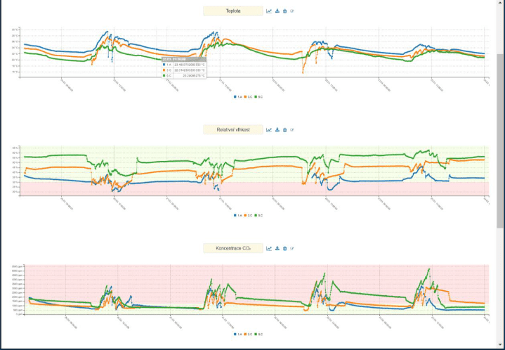 The IAQ platform monitors the space we live in and helps us to maintain the environment. Sensor provides comprehensive evaluation of indoor quality. The users can easily view measured data in the web interface, which also allows to view history and settings to improve the environment.