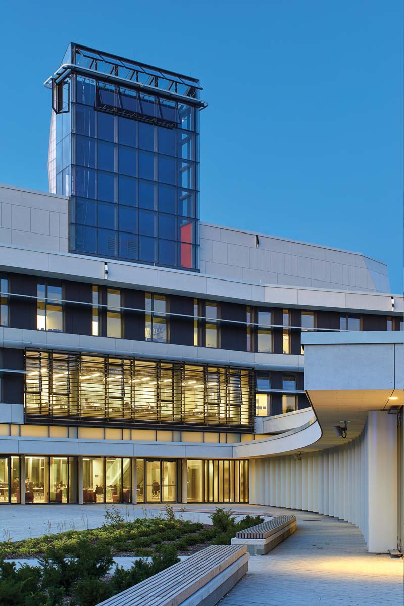 McEwen Graduate Study & Research Building in York University (Toronto, Ontario, Canada) – a solar chimney for facilitating NV (source: https://www.canadianarchitect.com)