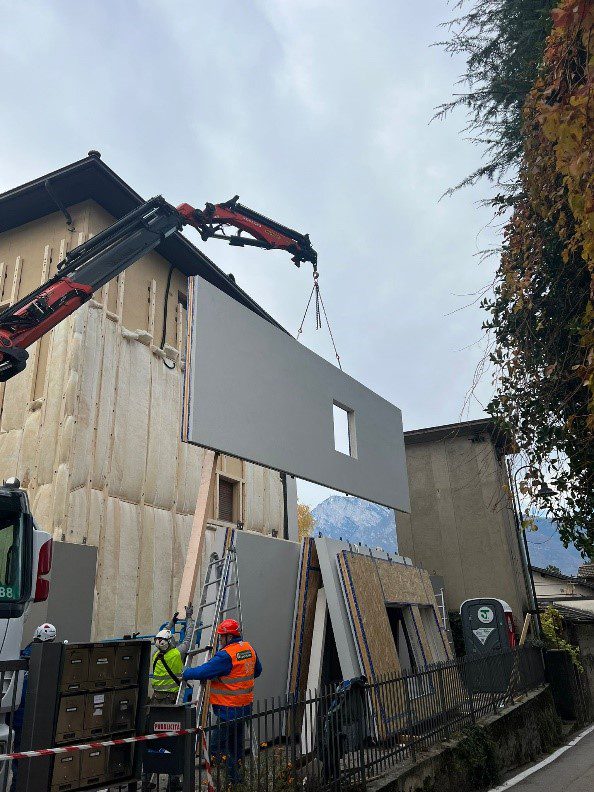 The second scenario is the architectural renovation and energy refurbishment of existing buildings using timber. The scenario consists of testing the prefabricated wooden-based panel – called “Renew Wall” (RW), a modular system and wooden-based retrofit kit conceived to be easily applied on existing buildings.