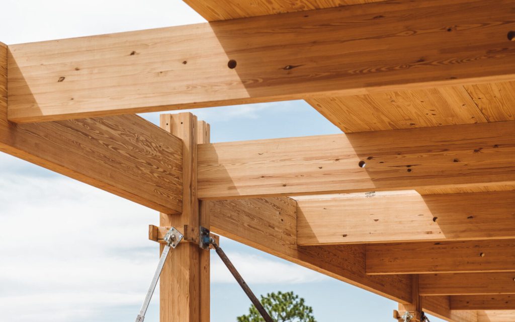 Glued laminated timber (glulam) was used in combination with CLT panels to form part of the load-bearing structure of the ARV Positive Energy Building in Trento. The GL24h laminated timber elements, made from PEFC-certified wood and compliant with UNI EN 14080, were employed for primary and secondary columns and beams, creating the building’s vertical and horizontal structural framework.